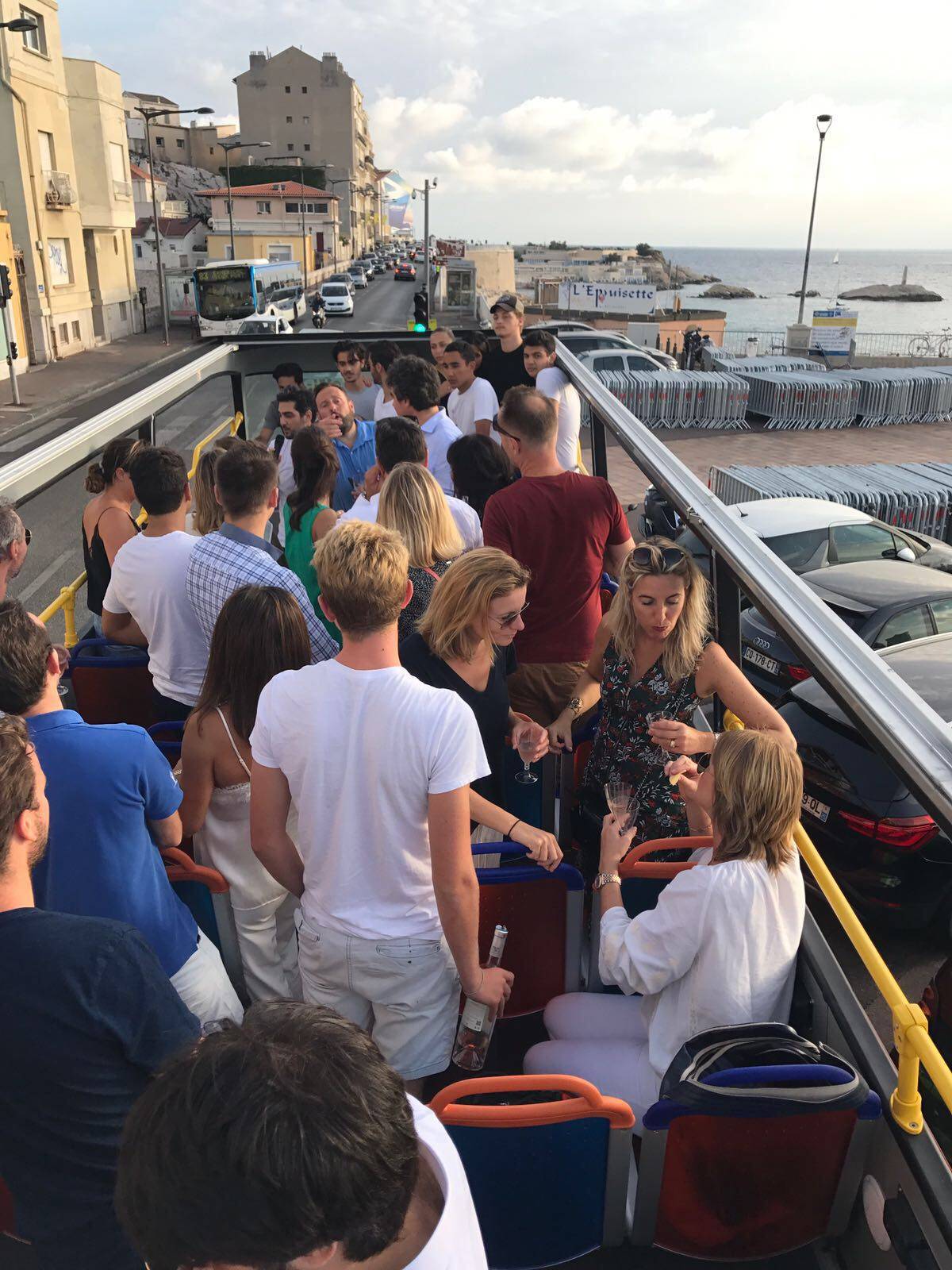 Le 18 juillet dernier, Colorbüs a lancé son premier AfterWork : l'Apérotour. Rendez-vous avait été donné aux invités pour une ballade en bus avec un départ depuis le rond point du Prado...durée de 1h30 avec un arrêt devant le Vallon des Auffes.